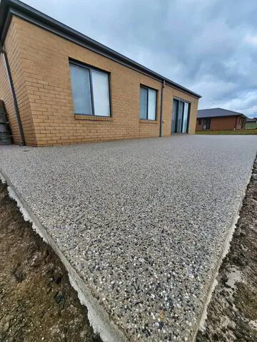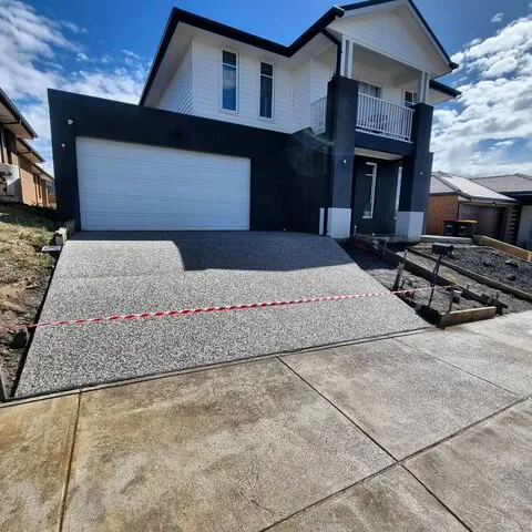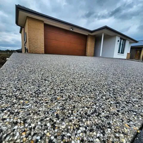 - Exposed concrete aggregate driveway: Exposed concrete driveways in Melbourne take away the top layer of cement to expose the decorative aggregate beneath the surface. This process not only adds an aesthetic appeal but also helps the driveway to be skid-resistant.